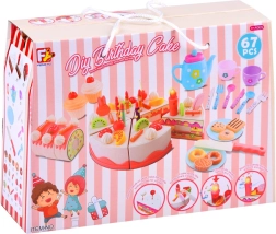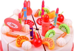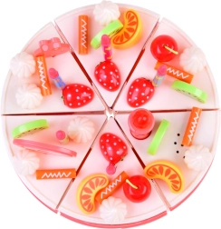 Jednotlivé části dortu jsou spojeny suchým zipem, což umožňuje dětem sestavit dort dle vlastních představ.