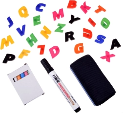 - Magnetická plocha pro připevňování písmen a psaní suchým mazacím fixem