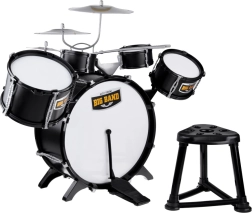Stylová dětská bicí souprava BIG BAND je skvělá volba pro malé hudebníky. Obsahuje 5 bubnů, 3 činely, lehké paličky a stoličku. Plastová konstrukce s důrazem na detaily a kovové/alu činely poskytují realističtější zvuk a pomáhají rozvíjet rytmus, koordinaci a hudební cítění.