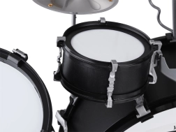 Souprava je ideální pro domácí trénink i první vystoupení. Odolné materiály a stabilní stojany zajišťují bezpečnou hru, zatímco černobílý design vynikne v každém dětském pokoji.
