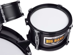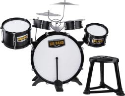 Dopřejte dětem první krok do světa hudby s realisticky zpracovanou soupravou BIG BAND. Díky pěti bubnům, třem činelům a pohodlné stoličce si malí bubeníci užijí spoustu zábavy a naučí se základům rytmu. Hlavní buben je vybaven pedálem, činely z hliníku dodávají hře věrnější zvuk a lehké paličky padnou do dětské ruky.