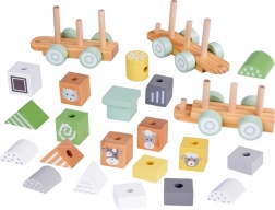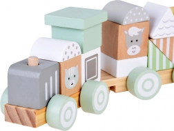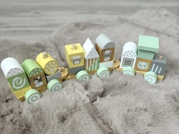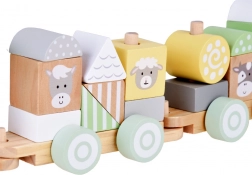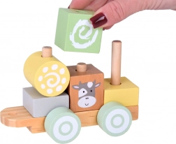 Dřevěný vláček je ideální hračka pro malé děti. Skládá se z barevných bloků s různými tvary a zvířecími obličeji, jako jsou kráva, ovečka, koník a kočička, což zaručuje velmi atraktivní zábavu. Děti mohou libovolně přestavovat, skládat a vytvářet, čímž rozvíjí svou motoriku a představivost.