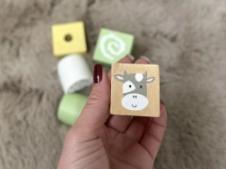 Obsahuje různé bloky s tvary a vzory, které podporují rozvoj manuálních dovedností a představivosti.