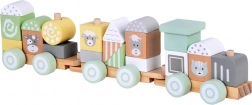 Každý vagón tohoto vláčku je solidně vyroben z odolného dřeva a snadno se připojuje k ostatním, což vytváří dlouhý vlak, který děti mohou posouvat po podlaze. Pastelové barvy dodávají hračce výjimečný šarm a výborně se hodí do každého dětského pokoje.