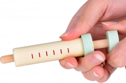 - Bezpečná dřevěná injekční stříkačka pro podání injekce.