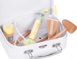 Dřevěná lékařská souprava umožňuje dětem prožívat role lékařů a učí je o zdraví hravou formou.