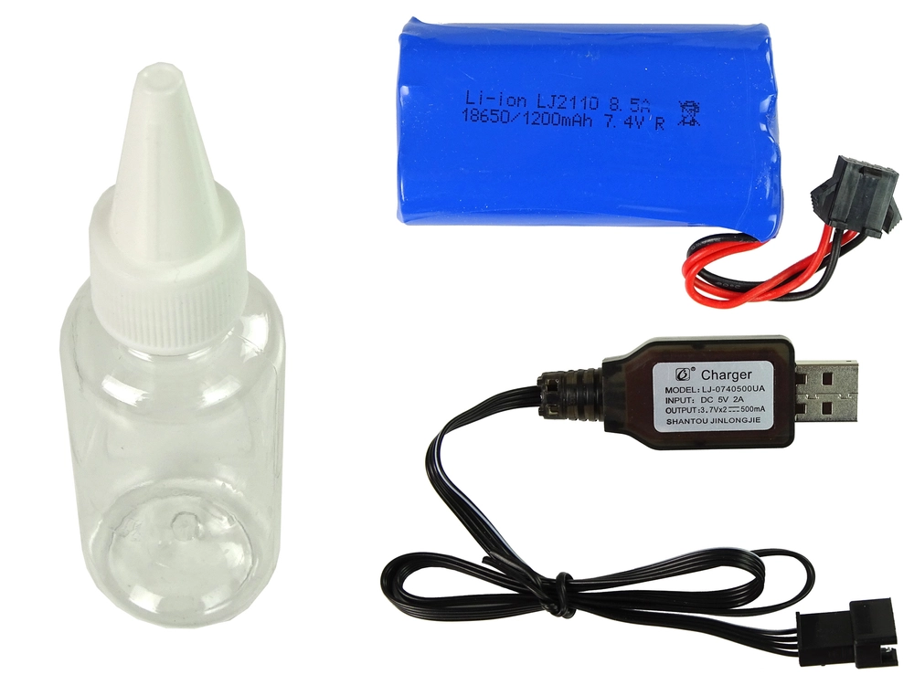 - RC auto, dálkový ovladač, USB nabíječka, baterie 7,4 V 1200 mAh, kapátko