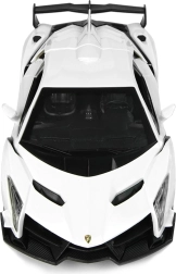 Objevte kompaktní, ale maximálně zábavné RC auto LAMBORGHINI VENENO v elegantní bílé barvě. Díky měřítku 1:24 se vejde na každý stůl či dráhu v obýváku a jeho aerodynamický design s výrazným zadním křídlem působí věrně a atraktivně. LED osvětlení vpředu i vzadu dodává jízdě realistický nádech i při horších světelných podmínkách.