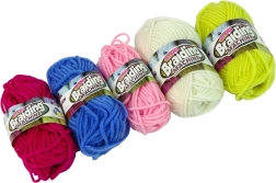 Součástí je 5 barev přízí (bílá, žlutá, tmavě růžová, světle růžová, modrá), takže můžete hned začít a kombinovat barvy do originálních vzorů. Sada rozvíjí kreativitu, trpělivost a manuální dovednosti a je skvělá pro začátečníky.