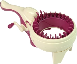 Objevte zábavu z pletení bez jehlic! Ergonomický pletací stroj s otočnou rukojetí vám umožní rychle a snadno vytvořit dlouhé šály, čepice či návleky. Stačí navléknout přízi na háčky, otáčet klikou a nechat stroj zaplétat pravidelná oka. Boční přepínače mění směr otáčení pro plynulé pletení.