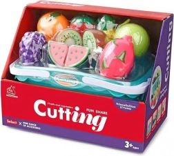 Skvělý košík plný barevného ovoce, které lze rozdělit na jednotlivé části pomocí suchého zipu, je perfektní pro hraní dětí. Tento produkt poskytuje realistický zážitek z krájení a učení se o ovoci.
