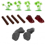 Součástí je 14 prvků (kameny, skály, palmy, klády), se kterými děti vytvoří farmu, safari i les a rozvinou fantazii i vyprávění.