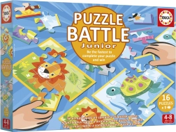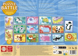 Zábavná a napínavá puzzle výzva pro děti i dospělé! Educa puzzle bitva Zvířátka kombinuje klasické skládání s rychlostním soubojem, který prověří postřeh i soustředění. V balení je 16 mini puzzle po 9 dílcích a 16 předlohových kartiček – ideální pro rodinné turnaje a trénink koordinace oka a ruky, trpělivosti a pozorovacích schopností.