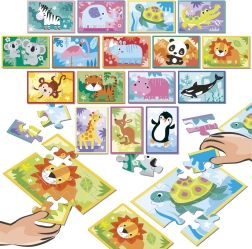 Proměňte skládání puzzle v akční hru! Sada Educa puzzle bitva Zvířátka přináší rychlé mini souboje, ve kterých se hráči snaží co nejrychleji poskládat své zvířecí obrázky podle předlohových kartiček. Každé puzzle má jen 9 dílků, takže je ideální pro kratší, ale intenzivní herní kola.