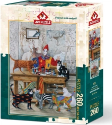 Objevte radost ze skládání s puzzlem ART PUZZLE s motivem barevných koček. Sada o 260 dílcích nabízí příjemnou výzvu i relax a po složení vytvoří obrázek o rozměru 34 × 48 cm.