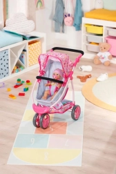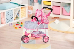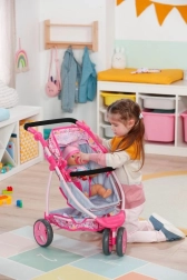 Tento kombinovaný kočárek je ideálním společníkem pro malé pečovatelky a jejich panenky. Díky možnosti přeměny na sportovní verzi si panenka může užívat jízdy v různé pozici. Kočárek má stříšku, kterou lze snadno sklopit pro možnosti slunění, a prostorný úložný prostor pro vše potřebné na procházce – od plyšového medvídka až po poklady nasbírané venku.