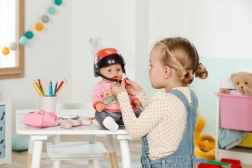 Chrání před zraněním a zároveň dodává panence BABY born stylovou jízdu díky pohyblivému hledí a hravým dekoracím.