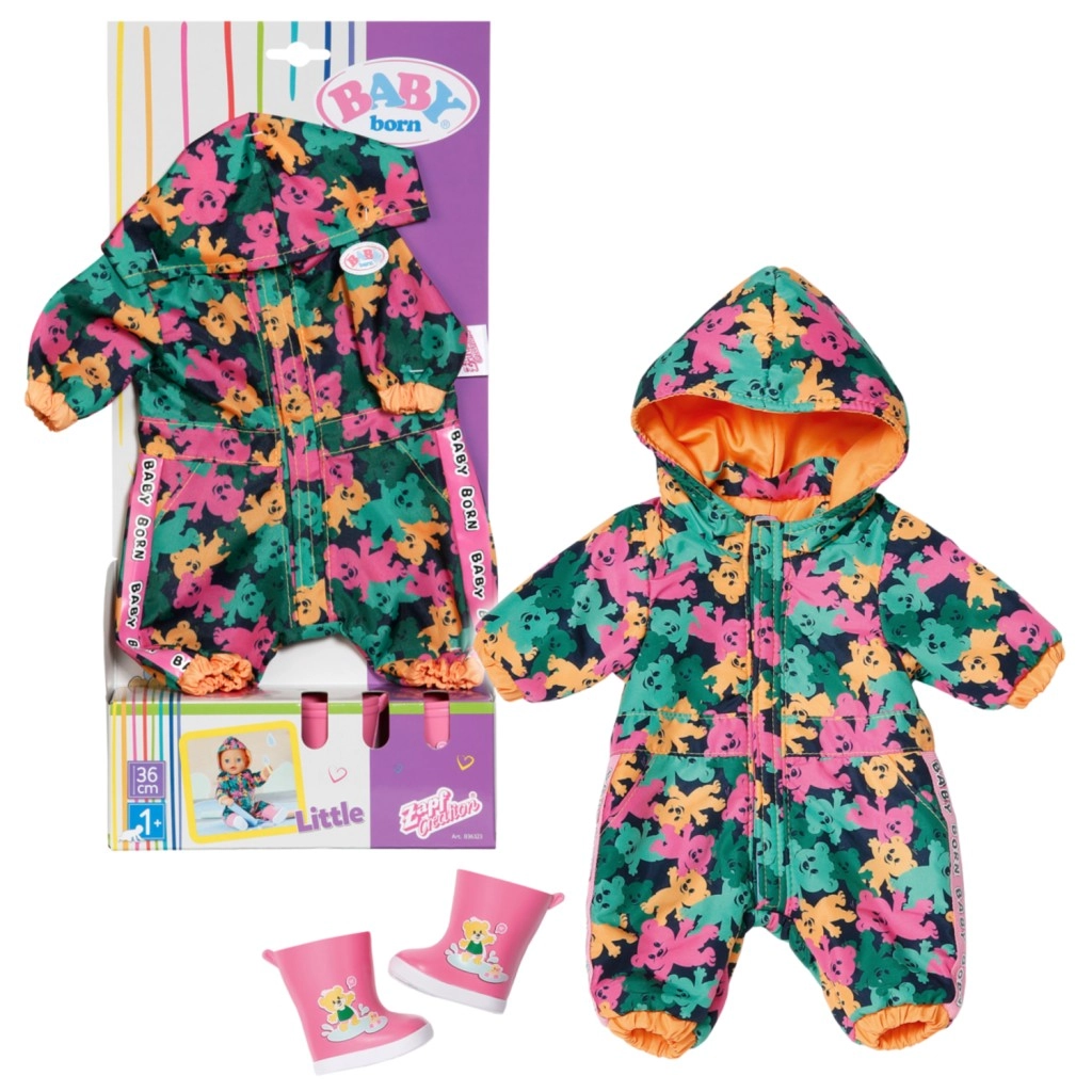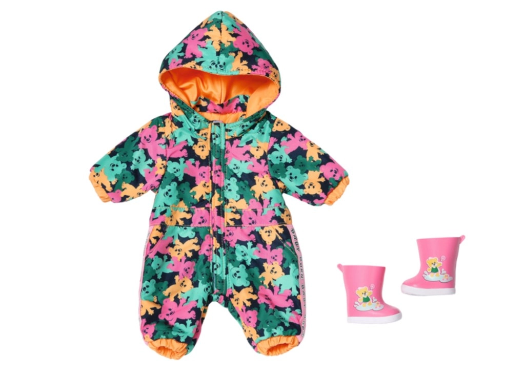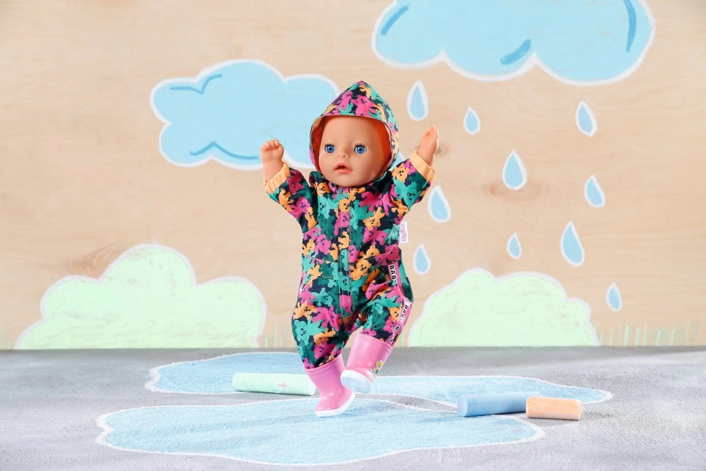 Tento barevný overal pro panenku BABY BORN velikosti 36 cm je navržen pro pohodlné oblékání a každodenní hraní. Díky střihu easy fit a přednímu zipu ho děti zvládnou obléknout samy. Nechybí kapuce, pružné manžety a sladěné holínky, které udrží nožky panenky v suchu.