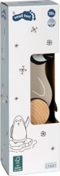 Při pohybu tučňák vydává jemné klapavé a kolébavé zvuky, které děti přirozeně motivují k dalším krokům. Pogumovaná kolečka jsou šetrná k podlaze a zajišťují tichý, plynulý pohyb. Kvalitní FSC dřevo garantuje bezpečnou a odpovědnou volbu.