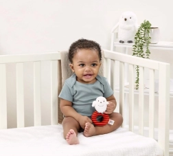 Lehké a měkké chrastítko je ideální na doma, do kočárku i na výlety – vždy po ruce pro klid a zábavu.