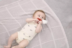 Textilní kroužek s protiskluzovou strukturou se dětem snadno drží a pomáhá rozvíjet jemnou motoriku.