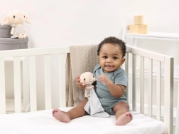 Texturovaná látka a vyšívané detaily povzbuzují hmatové vnímání a zvídavost nejmenších.
