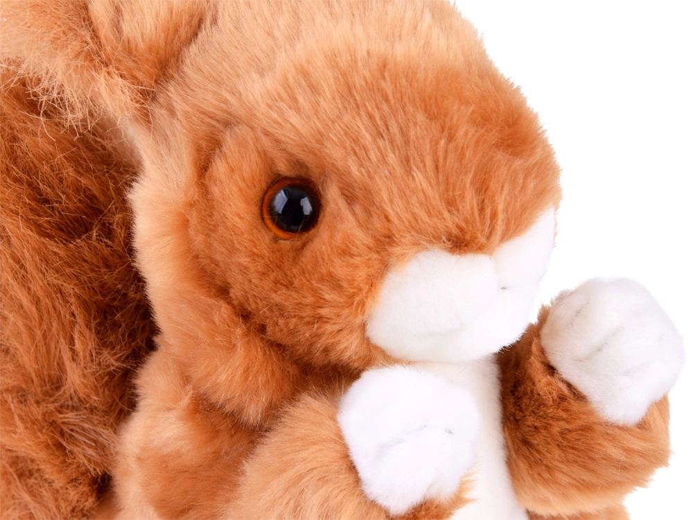 Detailní zpracování, výrazné oči a huňatý ocas dodávají veverce živý výraz. Jemný plyš je příjemný k mazlení a bezpečný pro děti.