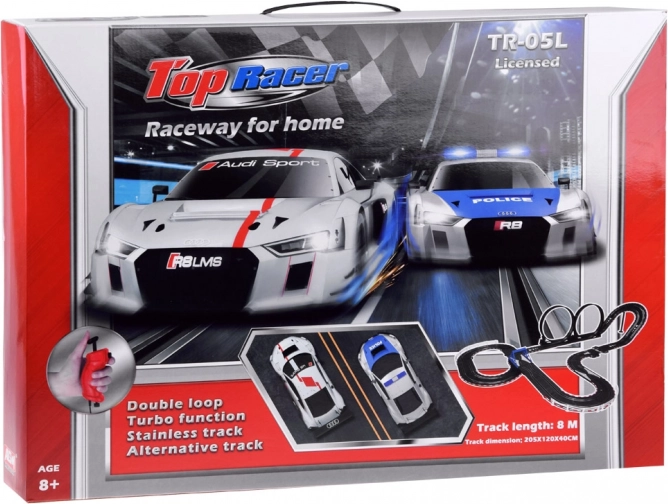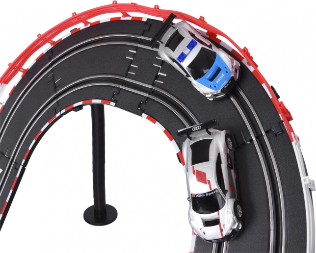 Postavte si vlastní okruh s mosty, smyčkami a dynamickými výškovými změnami. Díky síťovému napájení a přesným ovladačům s funkcí „plynu“ máte rychlost pod kontrolou v každém okamžiku. Dvě detailně zpracované závodní auta AUDI se drží stopy a zvládají i náročné prvky tratě.