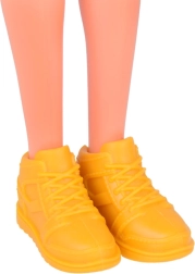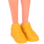 Žluté boty s realistickými tkaničkami a vzorkem podrážky lze snadno sundat a znovu obout – ideální pro převlékání a styling.