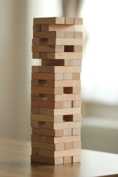 Klasická společenská hra pro celou rodinu, která přináší hodiny napětí a smíchu. Ze stabilně postavené věže hráči postupně odebírají kostky tak, aby se konstrukce nezhroutila. Hra je vyrobena ze dřeva a rozvíjí jemnou motoriku, zlepšuje soustředění a trénuje trpělivost. V balení najdete 54 dřevěných kostek pro zábavu o samotě i ve skupině.