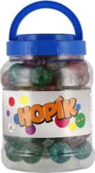 Tento hopík je vyroben z kvalitního plastu, který mu dodává odolnost. S jeho třpytivým povrchem v šesti různých barvách přináší vizuální potěšení při každém skoku.