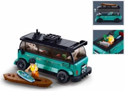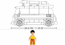Stavebnice nabízí detailní model surfařského vozu s realistickými prvky jako jsou okna, kola a střešní nákladní nosič.