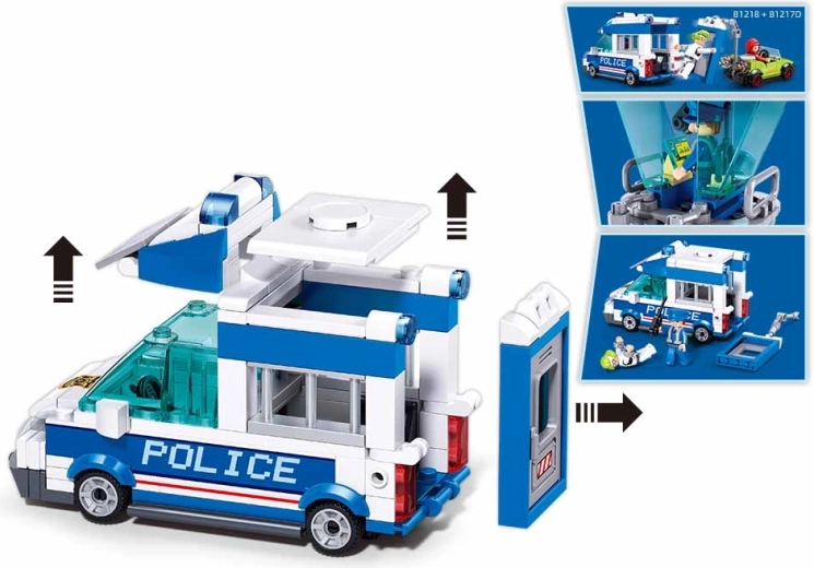 Tento policejní vůz je vytvořen z propojitelných plastových kostek, obsahuje funkční prvky jako satelitní anténu a pohyblivé dveře.