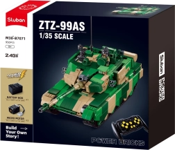 Se stavebnicí Sluban Power Bricks si děti mohou postavit vlastní tank ZTZ-99AS, který je ovládán na dálku. Tato inovativní stavebnice obsahuje 950 dílků, 1 figurku a je vyrobena z kvalitního, nezávadného ABS plastu. Model v měřítku 1:35 nabízí otáčení věže o 360° a možnost pohybu vpřed, vzad a zatáčení doprava i doleva.