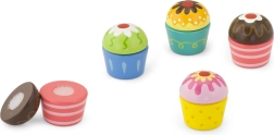 Popusťte uzdu dětské fantazii a nechte malého cukráře skládat vlastní sladké kombinace. Každý dortíček se skládá ze dvou částí spojených suchým zipem – polevu a korpus lze snadno vyměňovat, znovu a znovu. Ideální doplněk do dětské kuchyňky i pro hru na obchod nebo kavárnu.