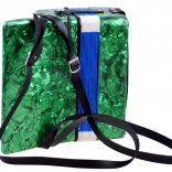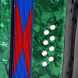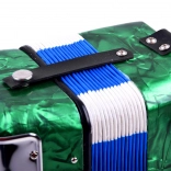 Objevte radost z hudby s tímto velkým dětským akordeonem v zeleném provedení. Vypadá jako skutečný nástroj, rozvíjí jemnou motoriku, hudební cit a učení rozlišování tónů. Díky klávesám i basovým tlačítkům, pohodlnému popruhu a zajišťovací sponě měchu je hra snadná a bezpečná – ideální pro malé začínající muzikanty.