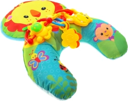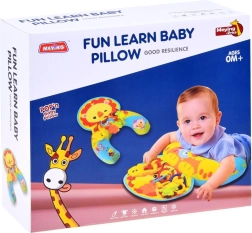 Barevný stabilizační polštář pro miminka se zvířecím motivem a závěsnými hračkami nabízí podporu při hraní na bříšku i během odpočinku. Díky šustící mini podložce a grzechotkám rozvíjí zrak, sluch i hmat, podporuje koordinaci pohybů a zpestří každou chvilku hry. Lehký, měkký a snadno udržovatelný společník doma i na cestách.