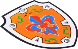 Štít zdobí výrazný erb s lilií, který podpoří dětskou fantazii a promění každou hru v rytířské dobrodružství.