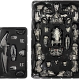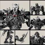 Kloubové klouby, otočné segmenty a plně pohyblivé prsty pro realistické pózy. Součástí jsou zbraně, maska a obrazový návod.