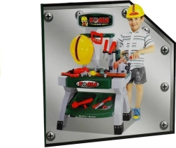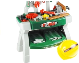 Zábavný a realistický dětský pracovní stůl s nářadím podnítí fantazii malých kutilů. Součástí je bohatá sada plastového nářadí, pracovní helma a funkční svěrák. Dvouúrovňový stolek nabízí háčky na nářadí i box na šroubky, díky čemuž děti trénují jemnou motoriku, koordinační dovednosti a učí se principům práce se spojovacím materiálem – vše bezpečně a hravou formou.