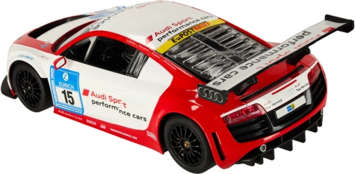 Detaily vozu AUDI R8 LMS včetně aerodynamiky, polepů a emblémů oživují skutečný závodní charakter. Skvělé pro sběratele i malé závodníky.