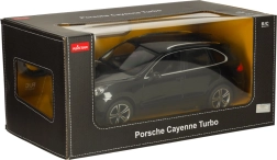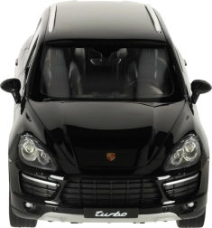 Model Porsche Cayenne Turbo v měřítku 1:14 je precizní miniaturou, s realistickými detaily jako logo Porsche, přední světlomety a charakteristická silueta.
