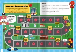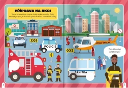 Vydejte se na dobrodružství plné úloh a výzev! V této knize se můžete zapojit do policejní honičky, vybarvovat a poznávat části hasičského vozu, řešit spojovačky nebo pomáhat hasit požár. Součástí knihy je více než 300 samolepek a také vytlačovací malé modely hasičského vozu a sanitky, se kterými si užijete nejednu akci či záchrannou misi.