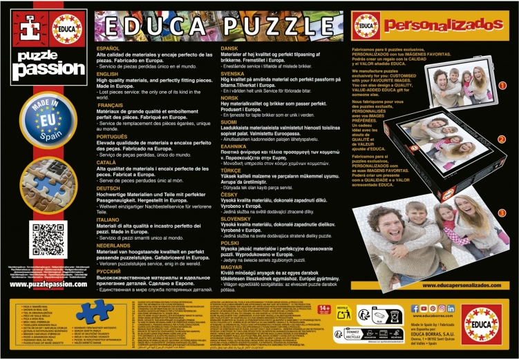 - Kvalitní zpracování Educa pro přesný tvar a odolnost dílků.