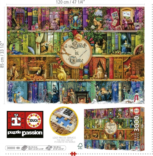 Objevte fascinující svět ručních prací s velkoformátovým puzzle Educa. Téma Šití v průběhu času zachycuje vývoj šití napříč dějinami a nabídne hodiny relaxační zábavy pro zkušené skládače. Sada o 3000 dílcích vytvoří působivý obraz o rozměru přibližně 120 × 85 cm – ideální pro rámování a dekoraci interiéru.