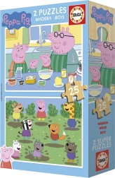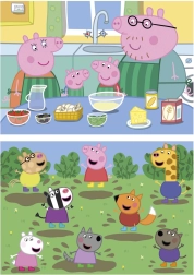 Objevte zábavu s dřevěnými puzzle pro nejmenší: dvě skládačky s motivem Prasátko Peppa, každá o 25 dílcích, z kvalitního dřeva a s velkými dílky pro snadnou manipulaci. Jasné barvy a odolné provedení zajistí dlouhou životnost a radost ze skládání.