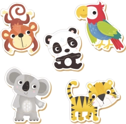 Objevte zábavné obrysové baby puzzle pro nejmenší od 24 měsíců. Balení obsahuje 5 progresivních puzzle s motivy divoké zvěře (3–5 dílků). Velké a pevné dílky se dětem snadno drží, podporují jemnou motoriku, pozornost a představivost.