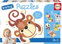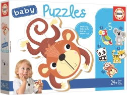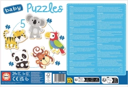 Educa baby puzzle Divoká zvěř 5v1 jsou speciálně navrženy pro malé děti, které s puzzle teprve začínají. Díky postupně většímu počtu dílků (3 až 5) si děti hravou formou budují jistotu a trpělivost. Velké a silné dílky se snadno uchopují a přesně do sebe zapadají.