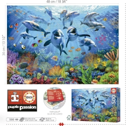 Vydejte se na podvodní dobrodružství! Puzzle Zábava pod hladinou vám nabízí 500 dílků plných barevného světa pod hladinou. Užijte si více zábavy s přiloženým lepidlem zdarma pro snadné uchování složené scény.