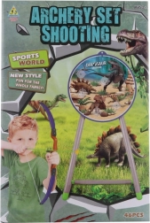 Plastová sada luku se šípy nabízí zábavu pro všechny malé dobrodruhy. Obsahuje kulatý plastový terč s fascinujícími obrázky dinosaurů.
